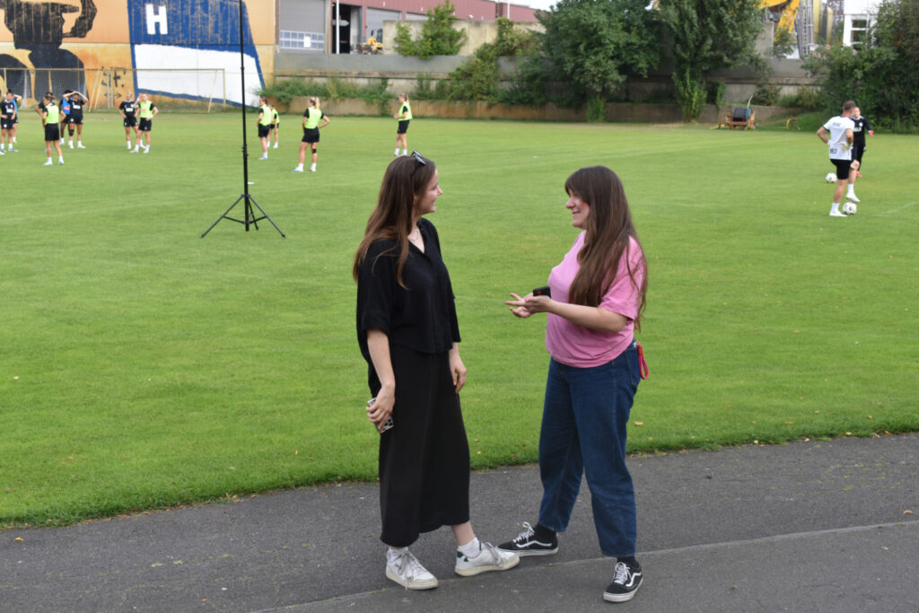 „Mein Highlight war eindeutig, beim FC Viktoria Berlin zu sein. Auch die Spielerinnen zu treffen, war ein cooles Erlebnis“, freute sich Antonia Bücherl von der Berliner Tafel. Die Tafel-Helferinnen konnten beim Training der Fußballerinnen zuschauen. Anschließend lernten sie von Mitarbeiterinnen des FC Viktoria Berlin, wie sie sich im männerdominierten Umfeld des Fußballs vernetzt und unterstützt haben.