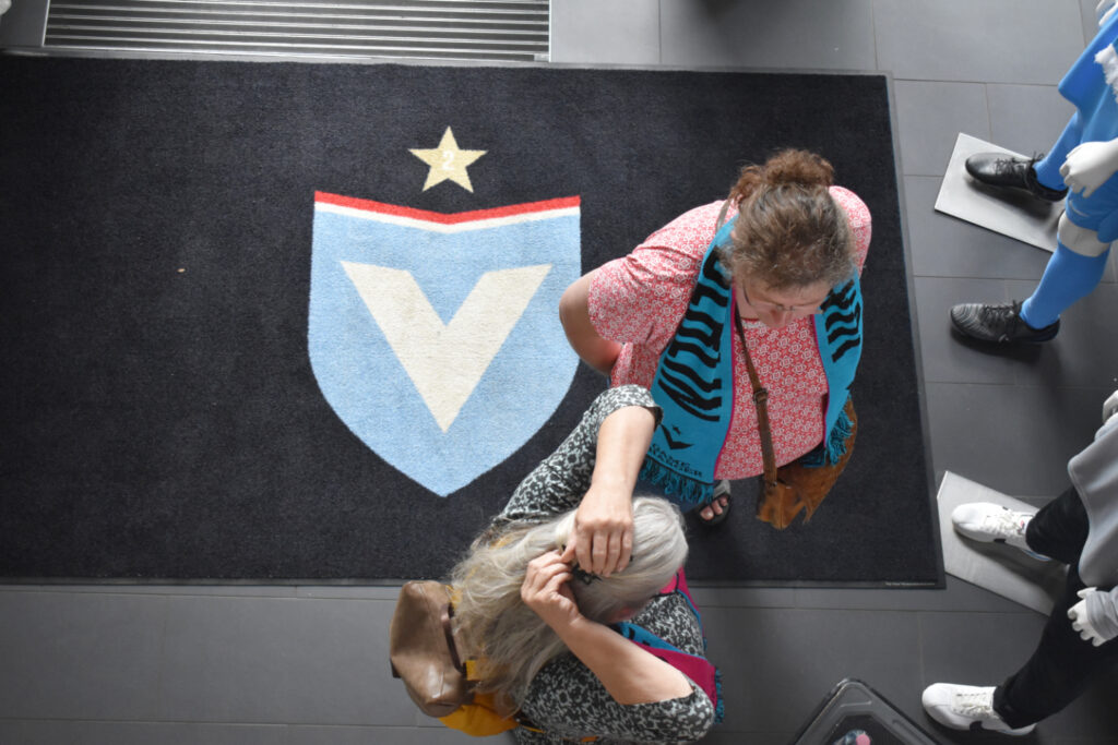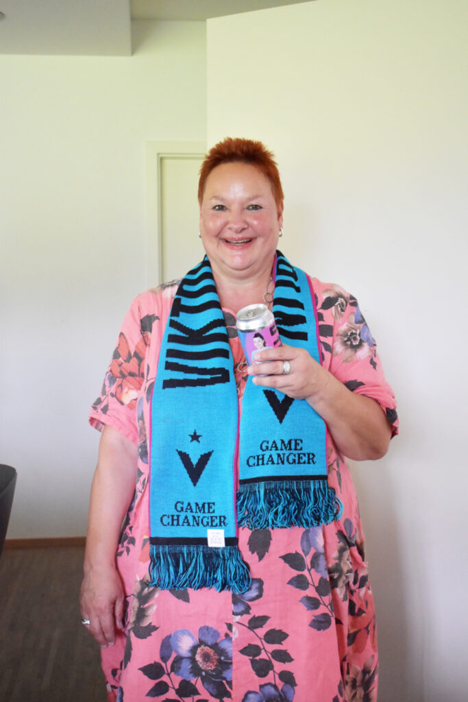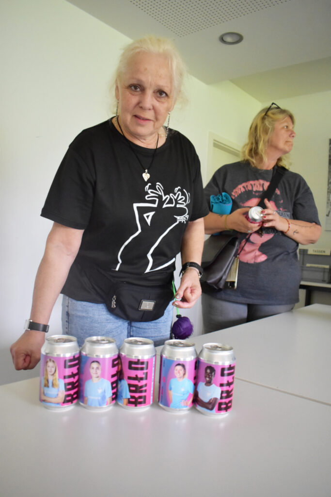 Heute leiten sechs Co-Gründerinnen die erste Fußball-Frauenmannschaft des FC Viktoria Berlin und haben ihr zu viel Sichtbarkeit verholfen. Wie sie das geschafft haben, berichtete Lisa Währer, Co-Founder und Managing Director: Inspiration lieferte Schauspielerin Natalie Portmann, die 2022 mit dem Angel City FC einen Frauenfußballverein in den USA mitgründete. Darüber kamen die Gründerinnen im Sommer 2022 zusammen und legten den Grundstein für die erste Fußball-Frauenmannschaft des FC Viktoria 1889 Berlin. Besonders begeisterte der professionelle Markenauftritt der Fußballerinnen die Tafel-Frauen. Lisa Währer schenkte den Teilnehmerinnen „Gamechanger“-Schals und alkoholfreies Bier, auf dessen Dosen die Fußballspielerinnen abgebildet sind. „Für die WM und EM der Männer gibt es immer wieder Spieler-Artikel. Das wollten wir auch für unsere Fußballfrauen machen“, erklärte die Co-Gründerin.