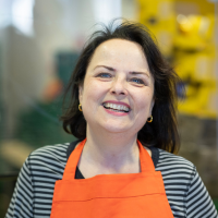 Ich komme aus der Ukraine. Zuerst habe ich bei der Tafel eingekauft. Ich hatte so viel Zeit, jetzt komme ich und helfe. Seit ich in der Tafel arbeite, lerne ich sehr gut Deutsch. Es kommen viele ukrainische Menschen. Sie sprechen kein Deutsch, aber ich kann helfen.